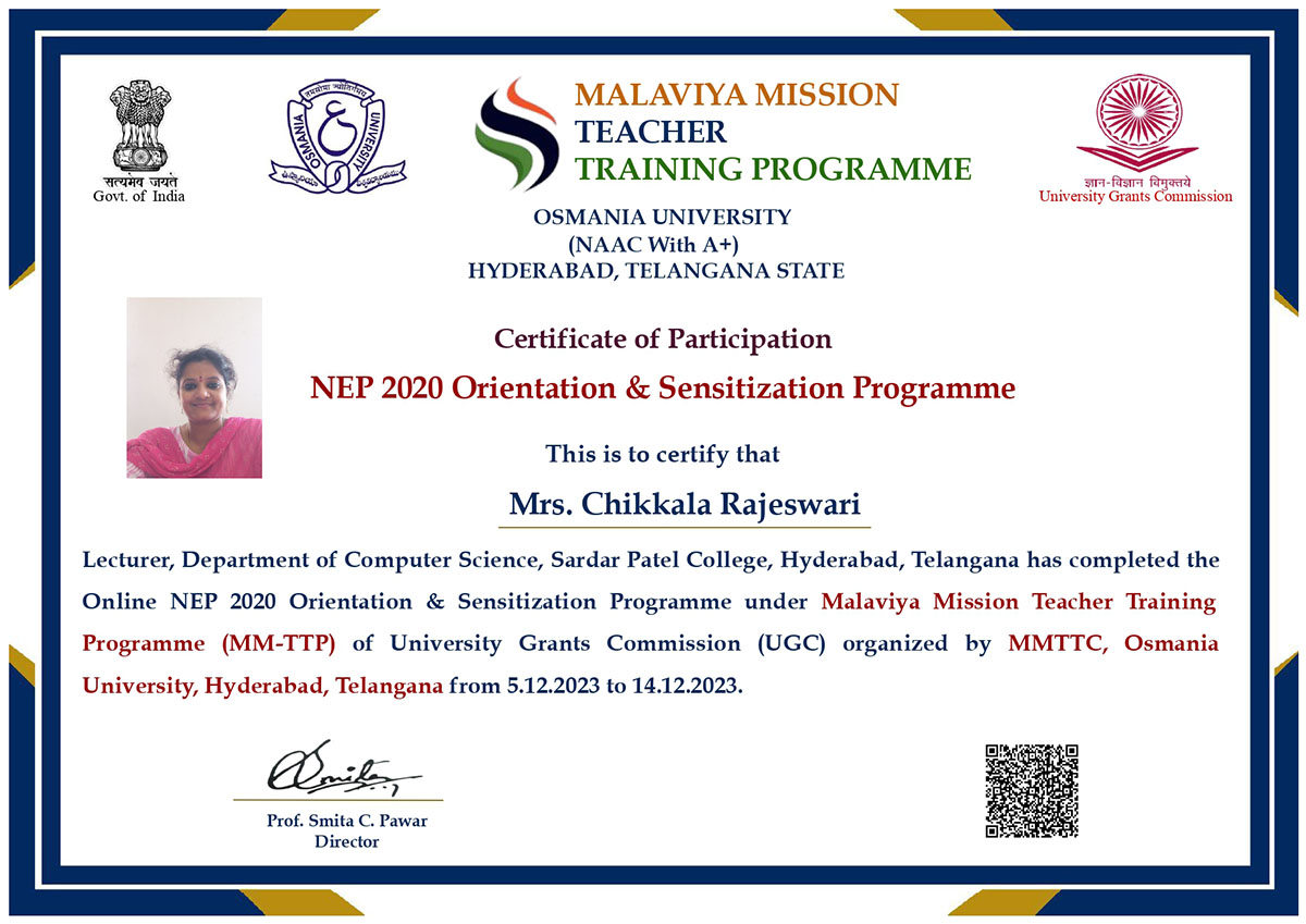 | 1. | Ch. Rajeswari | M.C.A (Ph.D) | Assistant Professor & Website Coordinator | 15 |